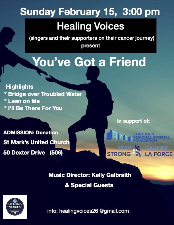 The response has been overwhelming, and the choir is obviously meeting a real human need – to gather with others who’ve faced, or are facing, similar challenges – and to experience the joys and benefits that come from making music. As Kelly put it in a recent interview with CBC, “when you sing in a choir, your heartbeats line up, you breathe deeper… you have to listen to each other… it creates a bond… and it allows you to let go and let the music wash over you.” The songs that the choir is singing reflect that theme, including Bridge Over Troubled Water, Lean on Me, and That’s What Friends Are For.
